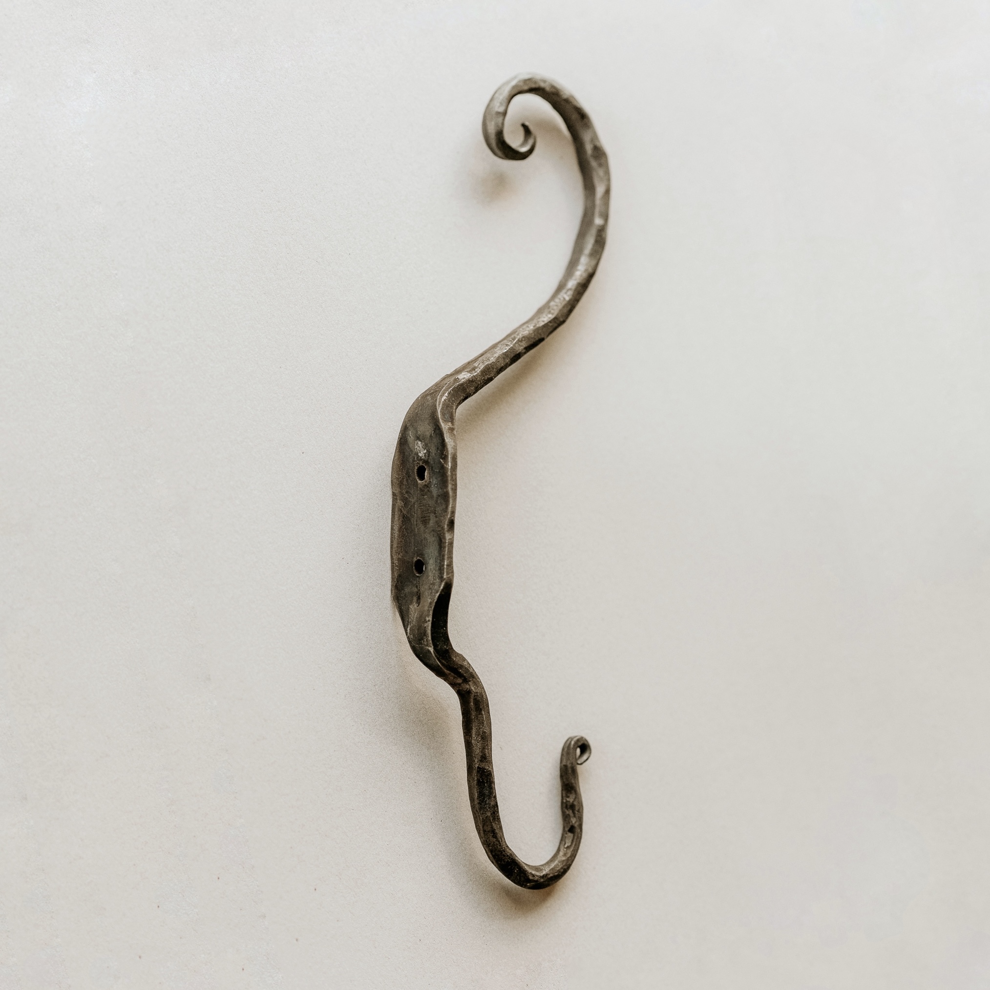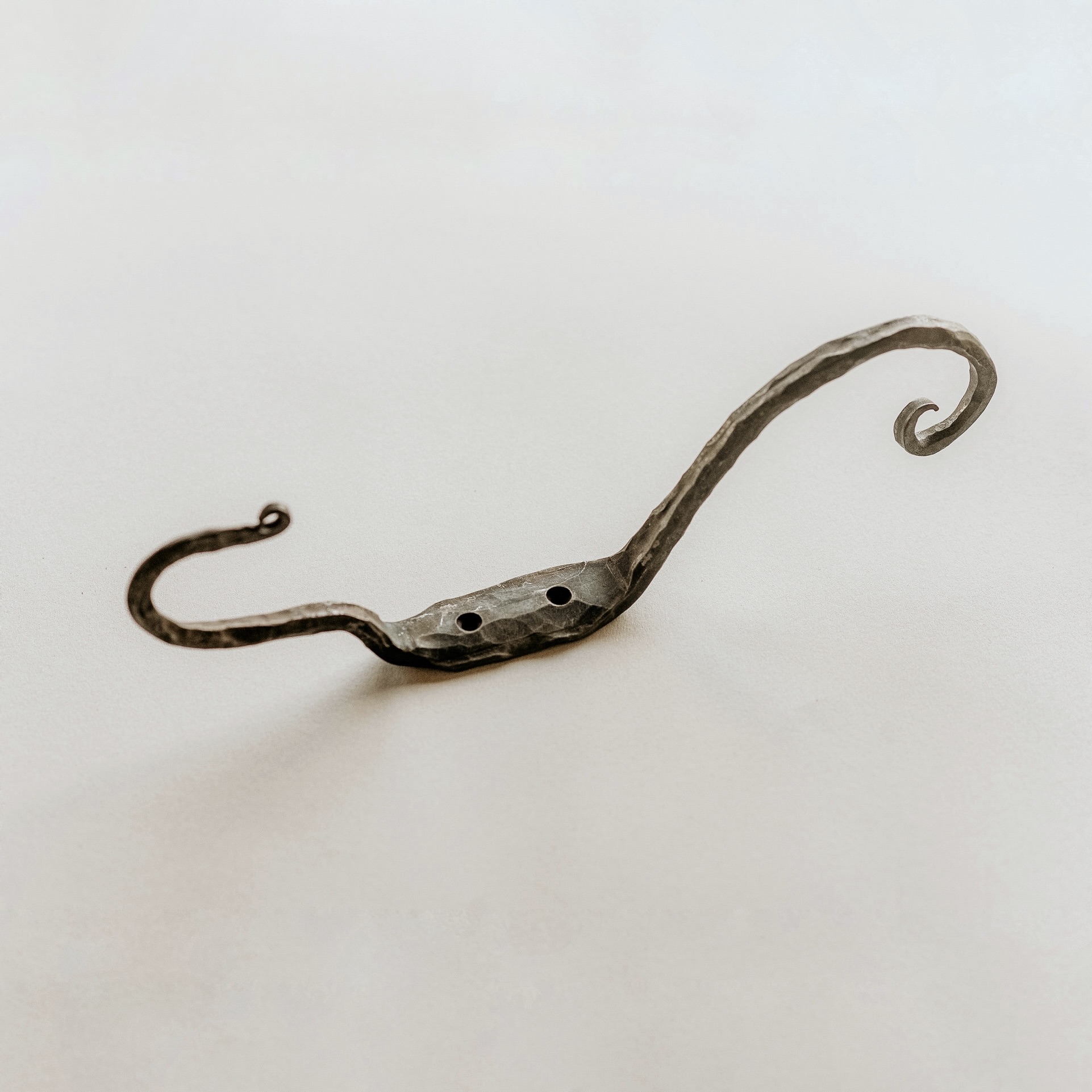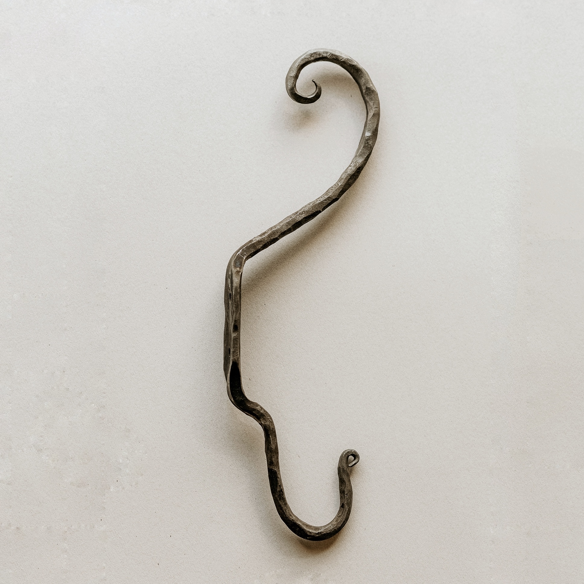Zaradi elegantnega, ukrivljenega dizajna se popolnoma poda v rustikalne, industrijske ali moderne interierje. Vsak kos je unikaten in železo je vzdržljivo za dolgotrajno uporabo. Namenjeno je obešanju oblačil, torbic, ipd.